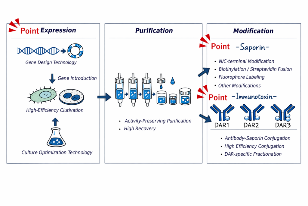 By dramatically improving the productivity of saporin—long regarded as a “difficult‑to‑express” protein—PhotoQ3 has established a robust supply foundation not only for research‑use material but also for advanced application‑oriented technology development.